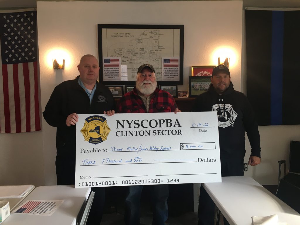 Clinton Correctional Facility makes donation to Shane Muller’s Santa’s Holiday Express in Clinton County.